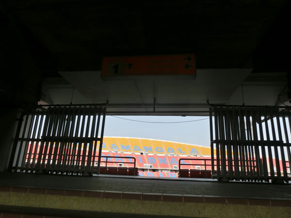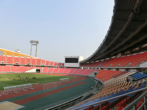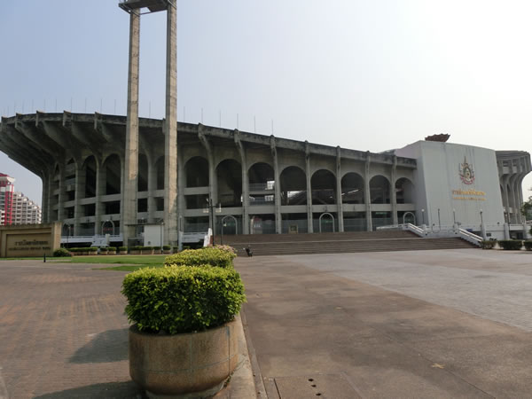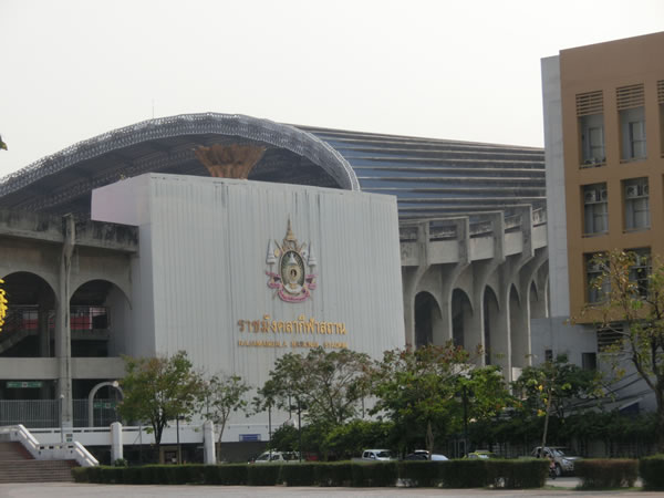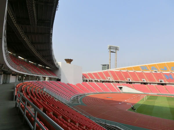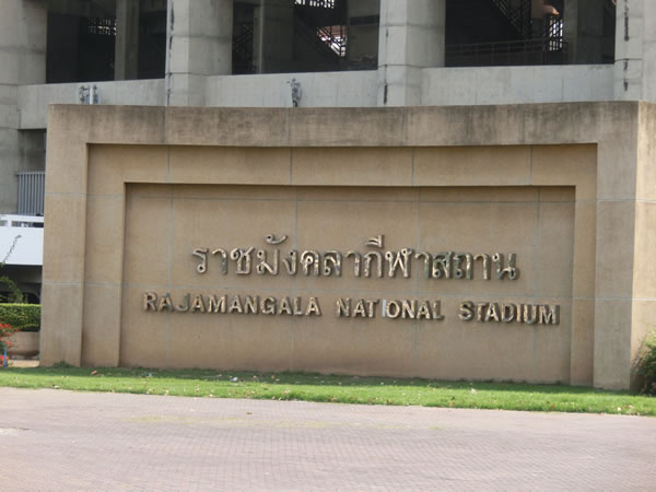 バンコクの高速道路で北方面を走っていると、左の方に巨大なスタジアムが見え、スタンドにある文字がなんとなく見えて「なんだろう?」と思い、その文字をヒントに検索したら、ラジャマンガラスタジアムにたどり着いたということでして・・・。65000人収容のスタジアム、ようやく足を運びました。