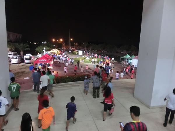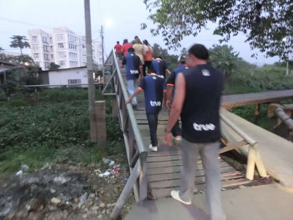 スタジアムのところの駐車場は、いっぱいらしく、少し先に誘導されてここが臨時駐車場になっていました。20バーツくらいだったと思います。
