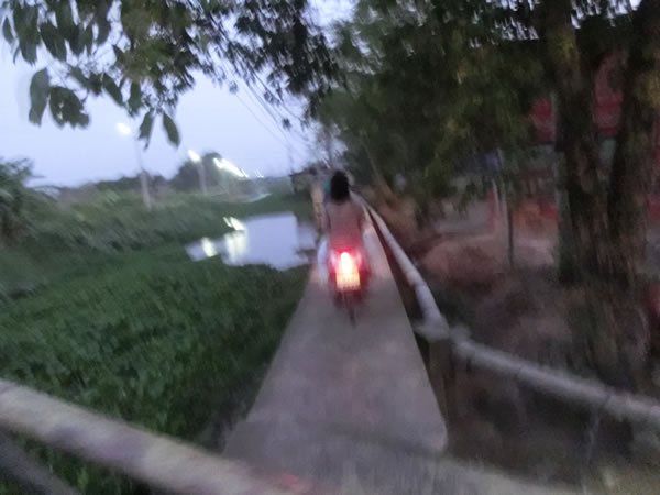 その横のかなり狭い道をバイクが颯爽と抜けていきます。写真で見える以上に狭いので落ちないのか見ている方がひやひやします。