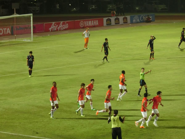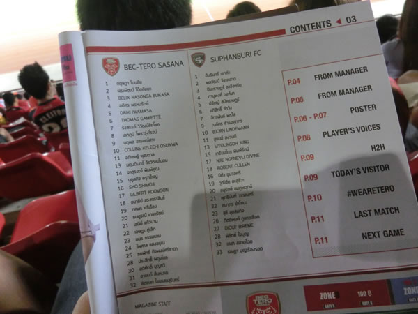 ちなみに、プログラムには、メンバーと背番号が入っているのですが、外国人選手は、アルファベット表記で、タイ人の選手はタイ語表記と言うことで、タイではこれが普通なのかもしれませんが、やや違和感を感じました。