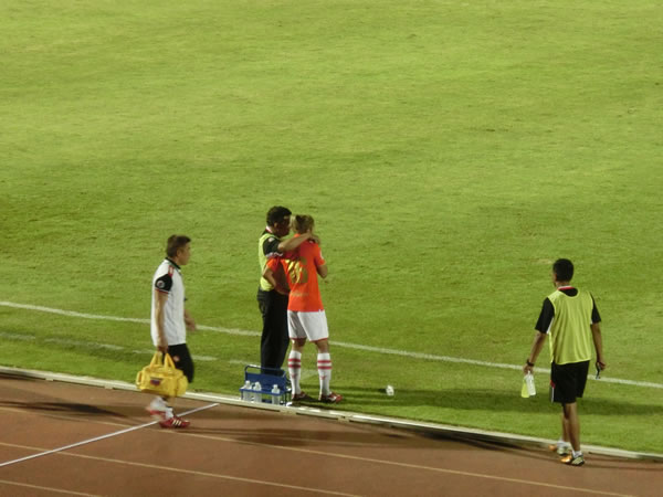 この写真の奥にいるのがカレン・ロバートですね。正直、あまりチームにはフィットできていないイメージでしたね。10番の選手がパスを受ける回数が多く、存在感はあるものの、やや細かいプレーの精度が低く、周りがうまく生かされないようなイメージ。でも、その10番の選手が強烈なミドルシュートでゴールを決めたりもするわけですが。後半の途中で、カレン・ロバートは交代で下がりました。