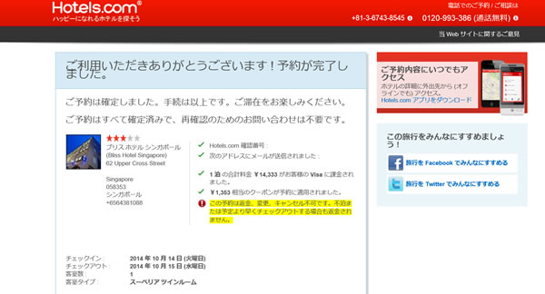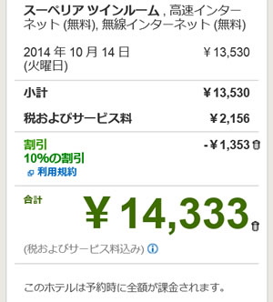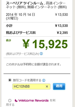 結果、14333円になりました(割引コードを使うとWelcome Rewardsが貯まらないので注意が必要です。)