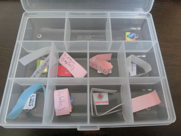 まあ、1年持たなかったとはいっても、Nexus5は、購入してから、かなり酷使していたのも確かなんですよ。上記は、これまでに使用したプリペイドSIMカードをピルケースに分けているものなのですが、右下のUAEのduのプリペイドSIMは、この端末では使用していないものの、それ以外の7つを抜き差しして使ったわけです(右上は、使用期限が過ぎてしまったフィリピンのGlobeのプリペイドSIMでなんとなく捨てていないだけなので、数に含めません。)