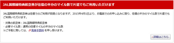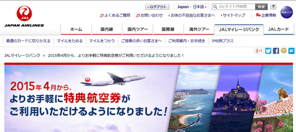 JALのウェブサイトを時々眺めるのが、仕事の合間の息抜き(?)みたいになりつつある、ここ最近ですが、JALマイレージバンクのページに2015年4月から特典航空券に関する部分で、変更があるという紹介の項目が登場していて、その内容が、思ったよりも使い勝手の良い変更だったので、今回は、紹介しますね。