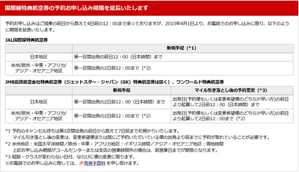 いくつか、項目が分かれているのですが、一番上に出ている項目が、国際線の特典航空券の予約申し込み期限に関してだったのですが、これは、地味ですが、結構助かる変更です。