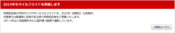 最後が、特典航空券の予約がとりやすいマイルフライト関連ですね。沖縄とか、札幌とか、今年は、行く機会があって、利用できればな~と思います。