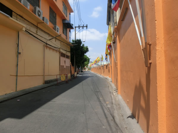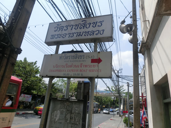 アジアティーク側からでも行けるようですが、正規のルートと思われる、ジャルンクルン通りの路地から、チャオプラヤー・エクスプレスのワット・ラーチャシンコーン(Wat Rajsingkom)船着場に行きました。