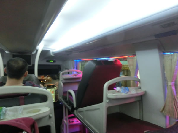 バスは、2階建て(とういうか、2段ベッド型の座席という方が適切かも)で夜行バスなので、完全に眠るための作りになっています。