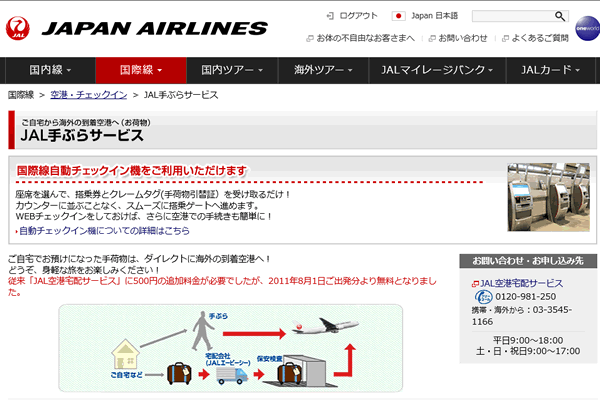 前置きが長くなりましたが、それが、タイトルに書いた「JAL手ぶらサービス」になります。*JALに限らず航空会社は、基本的にこのようなサービスを行っている。