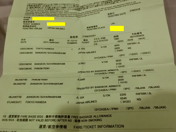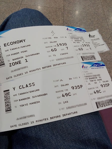 8日のJALの深夜便でプノンペンに戻るときにJALの方に聞いてみると・・・バンコクエアウェイズ要因なので、マイルもFLY ONポイントもつかないと・・・ANAのチケットを渡された時に、確認して、ワンワールドとか別のJAL便(これはすなわち、バンコク1泊を意味することになるのですが)にする必要があったようです。