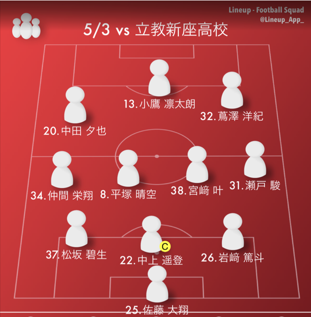 上記は、前半最前線に入った13番小鷹 凛太朗に長いボールを入れる試みが多かったですよ、と言うメモ(前半10分くらい)