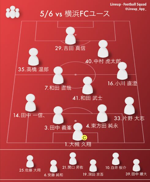 後半39分:33番片野 大志⇨39番田中 暖大、16番小川 直澄⇨10番白井 桜介、29番吉田 真信⇨21番関口 昇佑