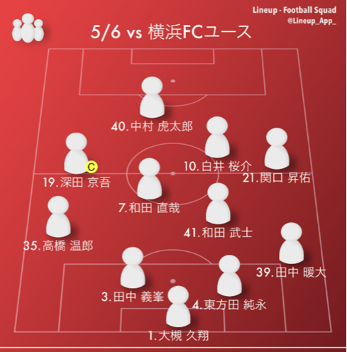 得点(横浜FCユース):前半2分 岩崎 亮佑、前半9分岩崎 亮佑、前半41分 福岡 湧大、前半31分 福岡 湧大