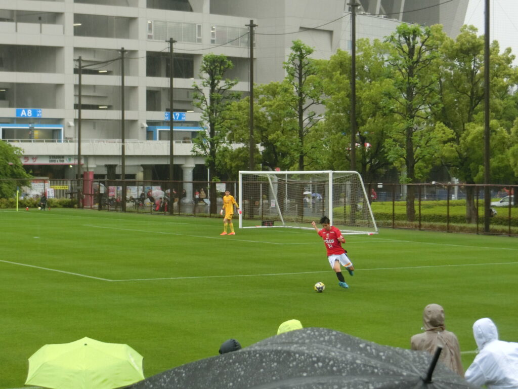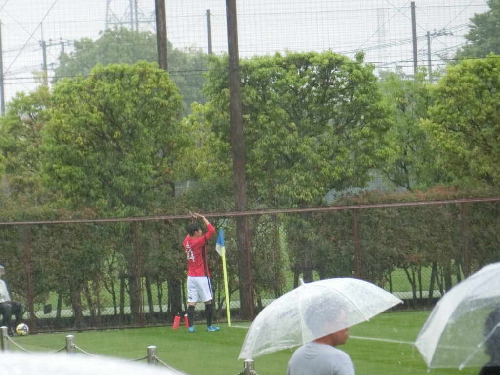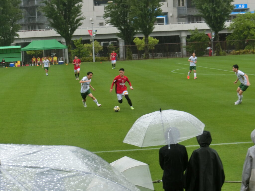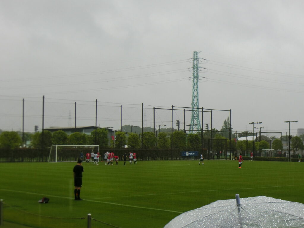 5月6日の横浜FCユース戦同様の埼スタサブグラウンド開催で、トップチームのホームゲームと同日開催で、天気はまたしても雨ということでしたが、今回は、第3グラウンドということで、スタンドがない会場、それ自体は全く構わないのですが、私、身長高くないので、前方で傘を差しいる方の関係で、結構試合が見えない場面が多くなってしまい、私も最後方で傘を差していたものの、実は傘が結構古いもので、なんだか傘差しているのに服が濡れるなと思ったら、雨が染み込んでいましたw