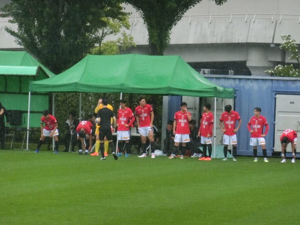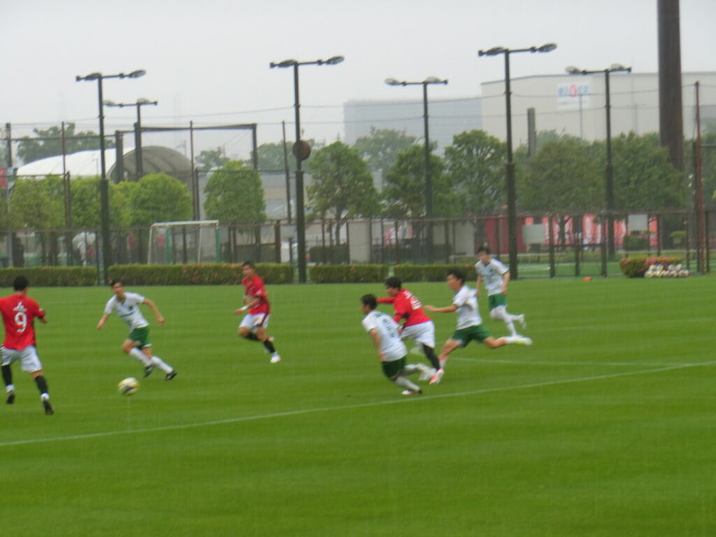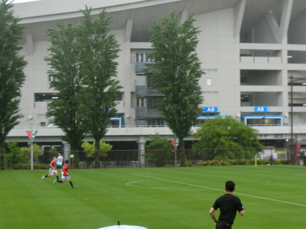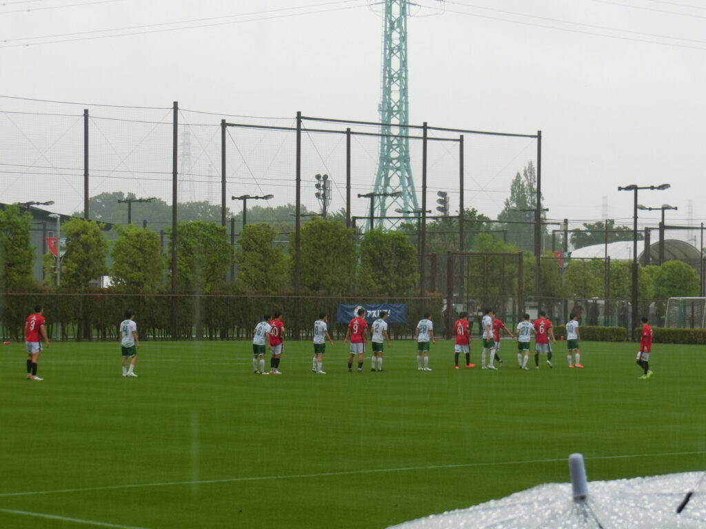 5月6日の横浜FCユース戦同様の埼スタサブグラウンド開催で、トップチームのホームゲームと同日開催で、天気はまたしても雨ということでしたが、今回は、第3グラウンドということで、スタンドがない会場、それ自体は全く構わないのですが、私、身長高くないので、前方で傘を差しいる方の関係で、結構試合が見えない場面が多くなってしまい、私も最後方で傘を差していたものの、実は傘が結構古いもので、なんだか傘差しているのに服が濡れるなと思ったら、雨が染み込んでいましたw