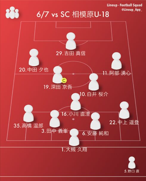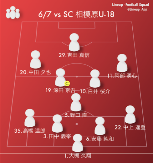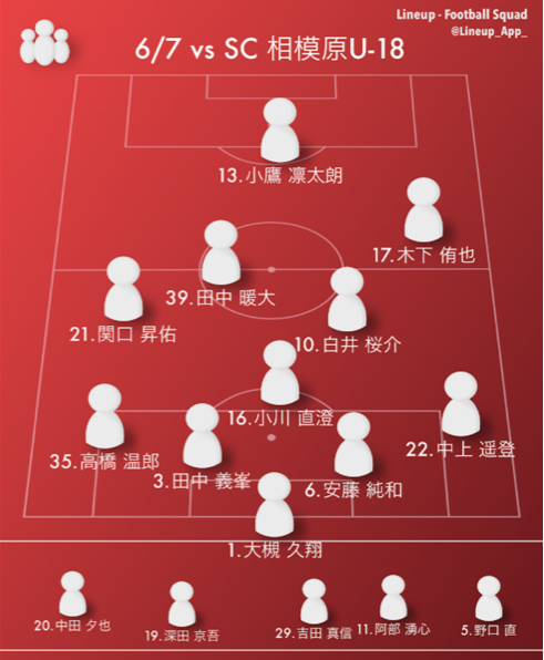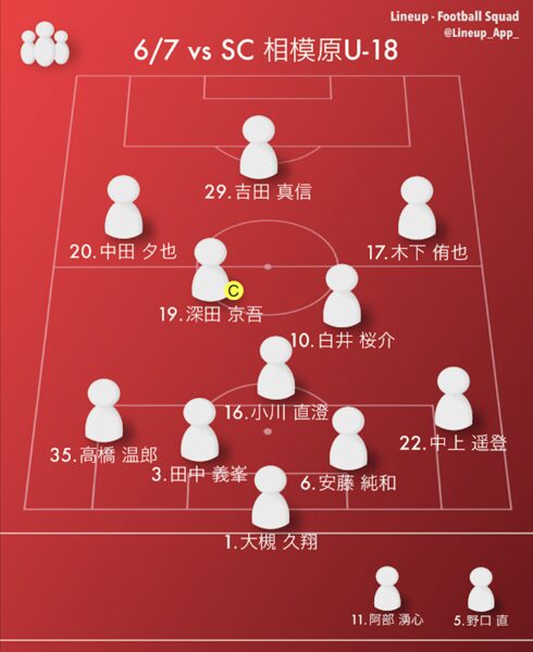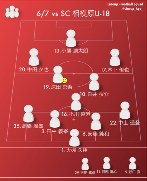 後半35分:19番 深田 京吾⇨ 39番 田中 暖大、20番 中田 夕也⇨ 21番 関口 昇佑