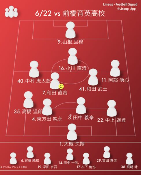 後半33分:22番中上 遥登 ⇨ 6番 安藤 純和、9番 山根 且稔 ⇨ 14番 田中 一信、