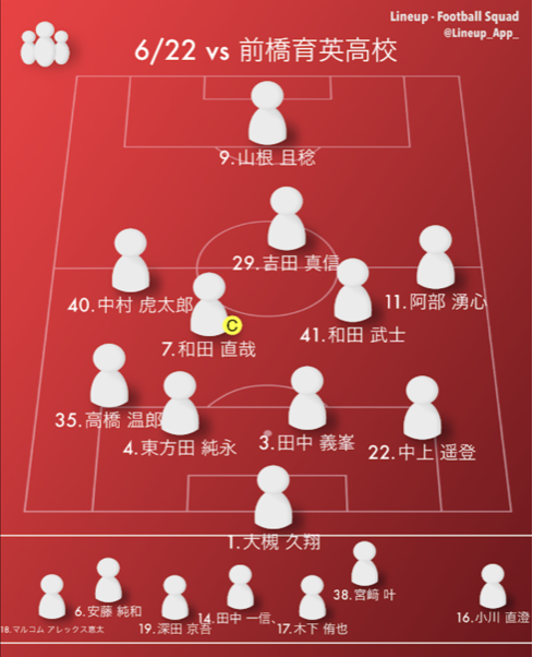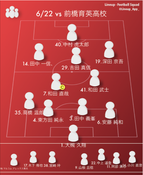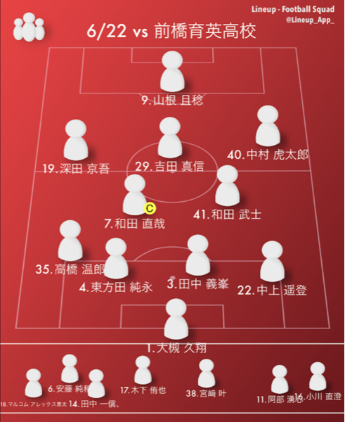 守備的な中盤2枚のところも、相手が前橋育英高校くらい中盤の質が高くなければ、攻撃に絡む形で上下に動くことで可能性が広がるなと感じたわけです。