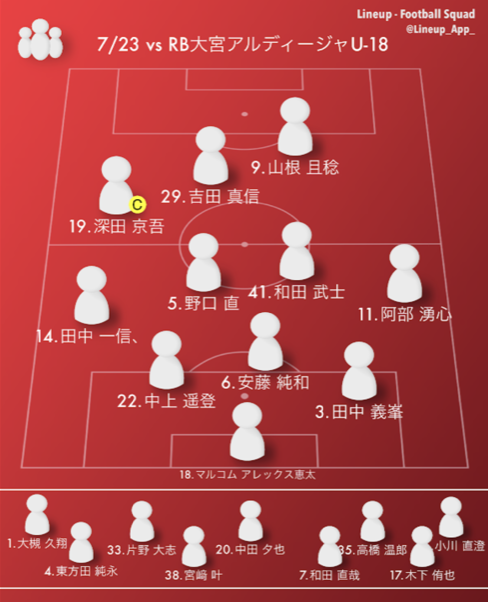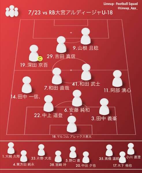 ・・・と、相手が大宮ということで、なんとなく、厳しいことを表面的な見方で書きつつですが、初戦の時にも書いたように、これは短期決戦の全国大会と、用意されたレギュレーションを短期で戦い抜く大会なので、初戦勝利している浦和レッズユースは引き分けという結果でも問題ないという前提があり、この試合の大きなポイントは、先制されたことで、通常よりもダメージが大きくなる展開から、落ち着いた形で同点に追いつくことができたこと(右前線への展開で11番阿部 湧心があえてワンテンポずらしてマイナスグラウンダーのクロスを入れ、この少しのずれのところで9番山根 且稔が相手ディフェンスを引っ張るような動きをして、16番小川 直澄が走り込んで決めた)と、終盤の疲労のピークの状態で思った以上に体が重くなっていた終盤に逆転できるような局面を多く作れたことにあると私は考えています。