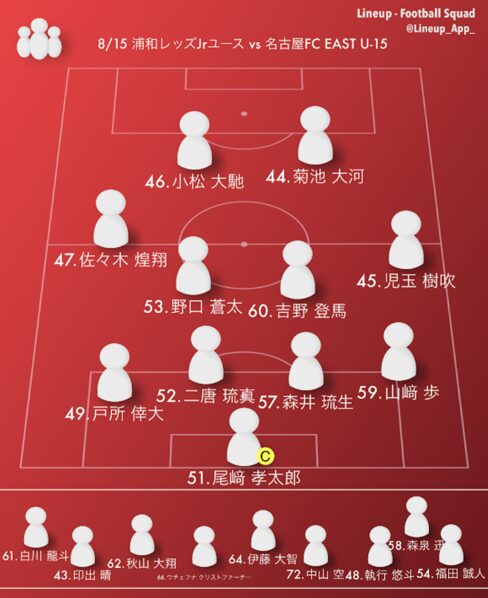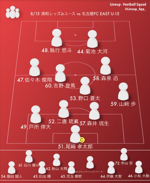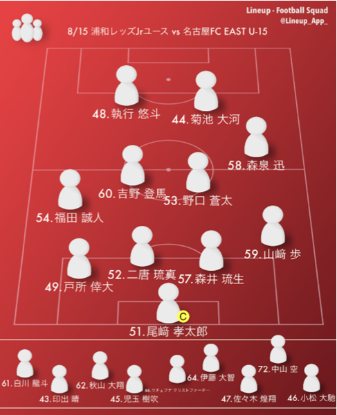 後半25分:58番 森泉 迅 ⇨ 45番 児玉 樹吹、48番 執行 悠斗 ⇨46番 小松 大馳