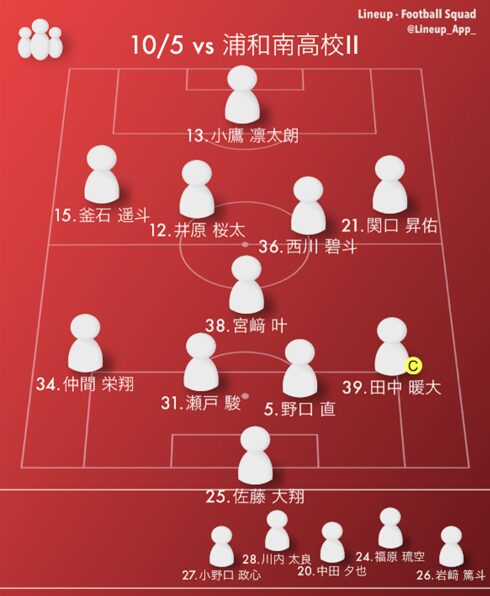 対戦相手の浦和南高校IIとの前回の対戦を思い返してみると、プレミアリーグとの兼ね合いで前半のみしか見られなかった中で、相手の攻撃にそこまで個々で強烈な怖さと言うものは感じられないと思っていたところで、失点が増えていき0-3の状態で前半が終了したところで、もどかしい気持ちで移動したら、最終的に3-3で終わっていたと言う最後まで見たかったなという記憶がパッと浮かんでくるのですが、その試合では、シーズンも序盤でまた、モチベーションのところも気になったりしていたので、攻撃のリズムが悪いのをチーム自らの要因と考えるところもあったのですが、この試合でも同様にサイド攻撃のケアの部分と前線の真ん中の選手にゴールに近い位置でプレーさせないような対応を意識的にされていたのかもと思うところもあったり、押し込まれている印象はないものの、浦和のサイドでプレーをしている場面が多く、後半は見ていた場所から遠いところでのプレーが多く、細かい状況がわかりにくく、なんというか、よくわからないと言う感想を持ってしまうところもあったりでした。