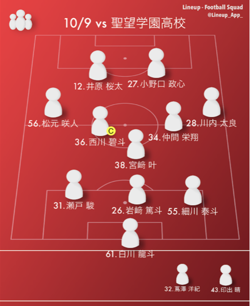 あとは、決まらなかったものの38番宮﨑 叶のゴール右隅を狙った直接フリーキックの軌道がなぜかすごく印象に残ってます(強く早く蹴らないけど軌道とボールの落ち方がキーパーにとってはすごく対処しにくいだろうなという)