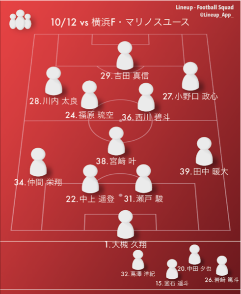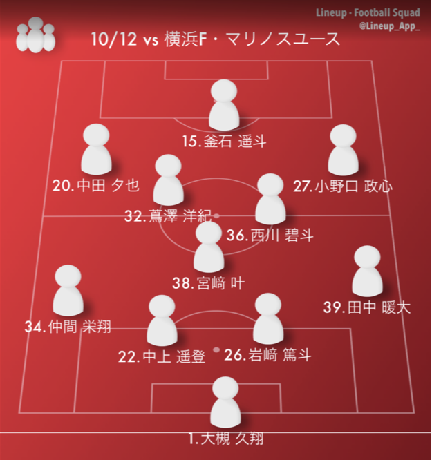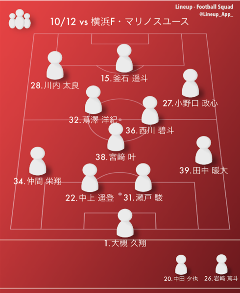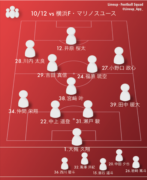 試合が始まって相手のプレースタイルなどを眺めながら、そういえば、1、2年生中心のチームで臨んでいるS2ベースでは、高校のチームが多くなり、足元のある相手が多い横浜F・マリノスユースのようなタイプと対戦する機会はこれまでなかったかなと思いつつ、序盤は、プレスをかけに行った時に、かわされる場面が多く、やりにくい相手に対してどう戦っていくのかなと思いつつ、相手が良いイメージでプレーできている時に奪いに行くのが難しくて面倒そうだなと思ったと同時に、これは、夏のクラ戦の時に対戦した大宮アルディージャU-18でも感じたところですが、チームとしての強さや上手さとは別のところで一つ下のカテゴリのリーグで戦っている関係か、相手のプレスの強度や、全体的な精度のところが低いと感じられるところもあり、序盤は、そこに気づかずに受けてしまって揺さぶられてフィニッシュまで持ち込まれた場面が何度かあったものの、徐々に、強度のところで勝り、相手のリズムも崩すようなプレーが増えたところで浦和の時間帯に持ち込むことができたのかなと思います。