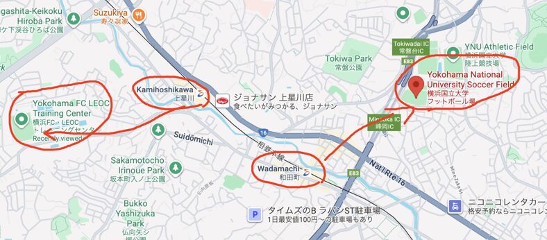 今年は、クラブユース選手権の予選を含めて、本当に神奈川方面での試合が多いですね、試合会場が横浜駅から距離だけで見ると歩けそうな距離にあるので歩いてみようかなと思うものの、必ず坂との戦いになることを思い出して最寄り駅までは行こうと思う構図で、今回も同じケースに該当する会場ですね。