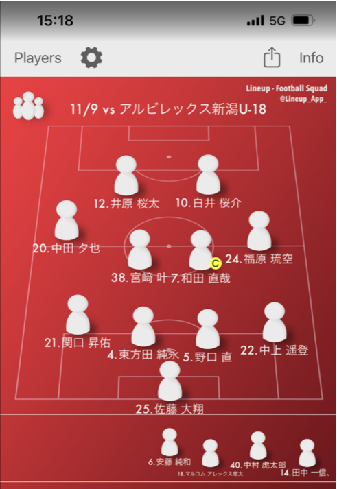 後半15分ごろ:18番マルコム アレックス恵太 ⇨ 25番佐藤 大翔、40番中村 虎太郎 ⇨ 12番井原 桜太、6番安藤 純和 ⇨ 38番宮﨑 叶