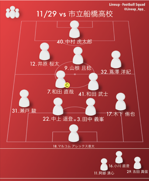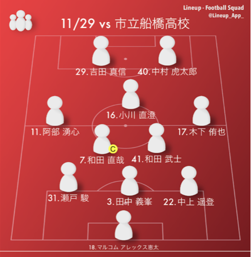 後半41分:17番木下 侑也 ⇨ 2番薄井 翼