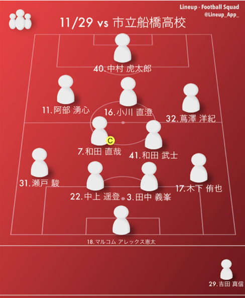 後半開始:29番吉田 真信 ⇨ 32番蔦澤 洋紀
