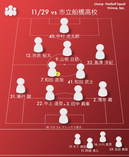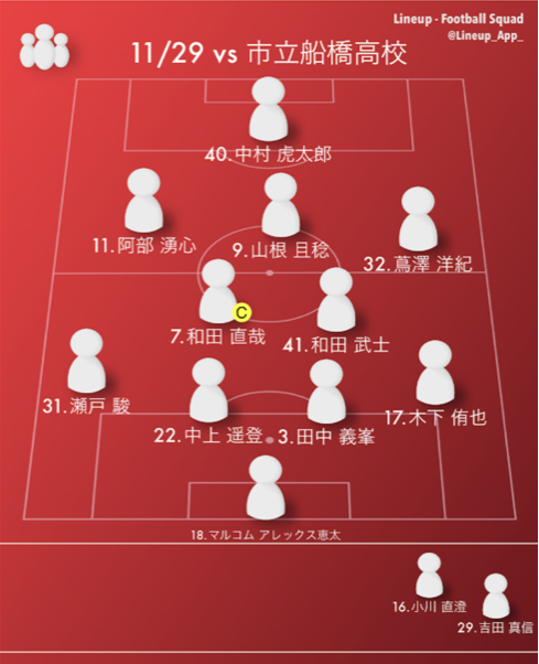 後半22分:16番小川 直澄 ⇨ 9番山根 且稔