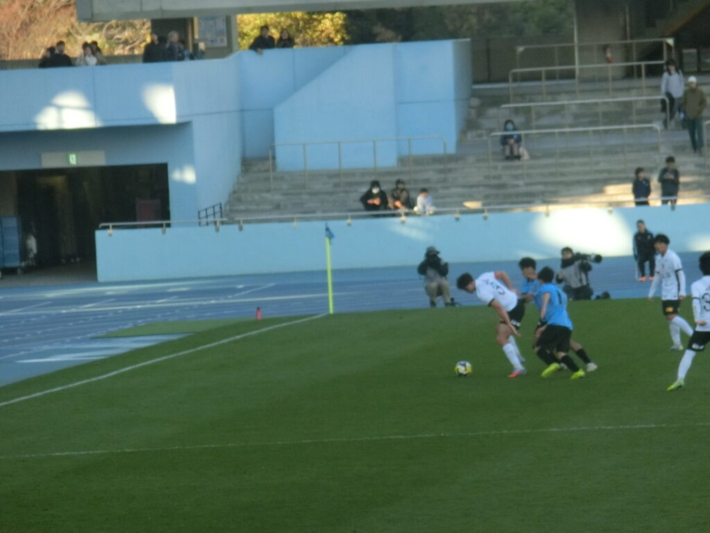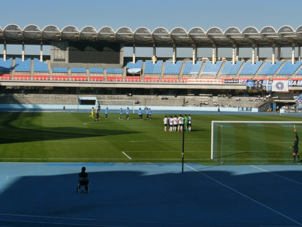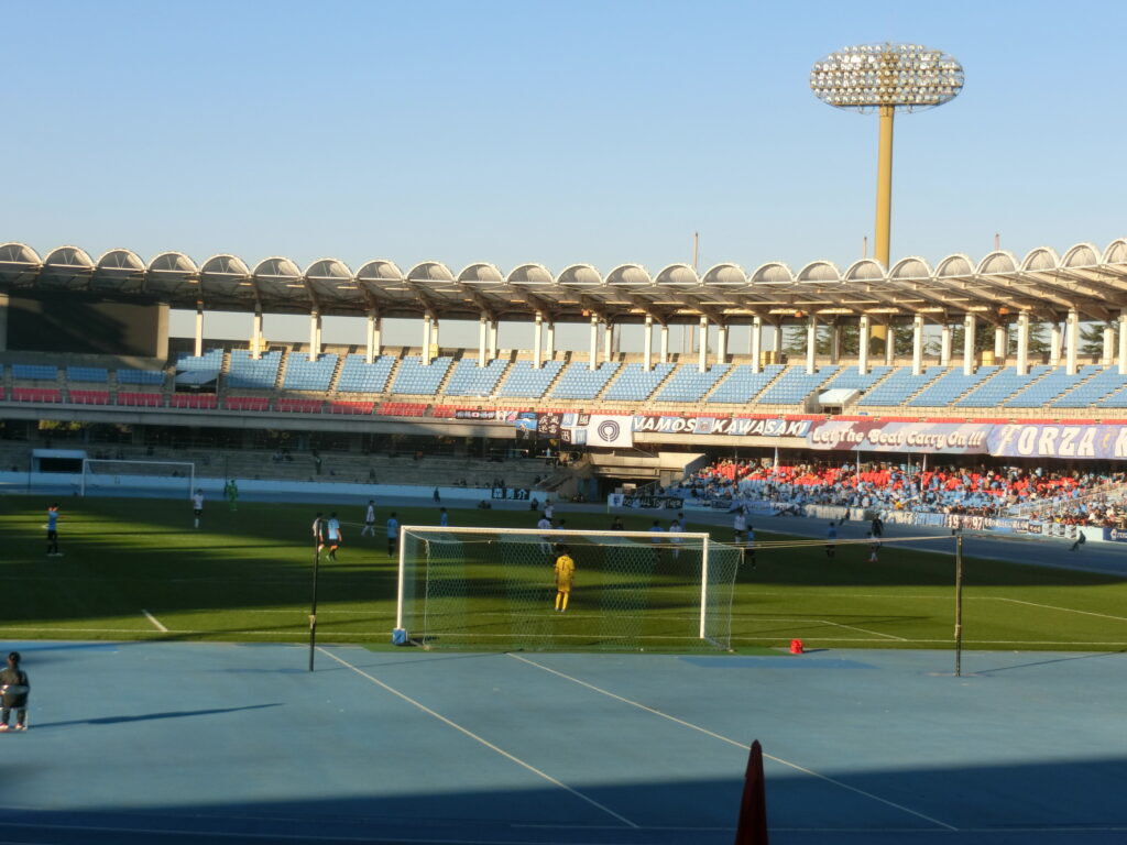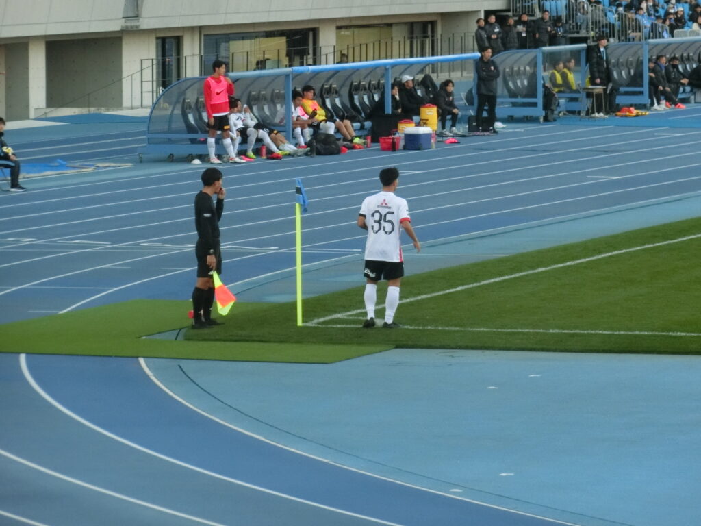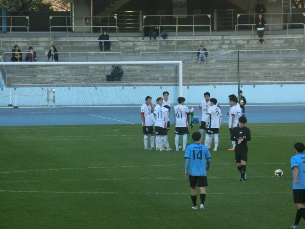 等々力陸上競技場でユースの試合を観戦するのはだいぶ昔の話(当時のフィンケ監督がユースの選手を視察に来ていた、浦和レッズではだいぶ珍しいトップの監督が育成の選手をしっかり見ようとしてくれた一時期だったのですごく私としては記憶に強く残っている)、また、一度、早慶戦で浦和レッズユース出身の新井純平と小坂慎太郎が所属していた時に足を運んだのも結構前、直近で2018年の高校サッカー(角田涼太朗が前橋育英高校にいた頃)なので、だいぶ久しぶりであり、この試合は、川崎フロンターレ側が5000人を入れるような形(そんな入らないだろうと思っていたものの、実際3000人は超えていたのですよね)で、エスコートキッズもあり、相手の応援はトップのような応援だったり、なかなかの力の入れようでしたね。