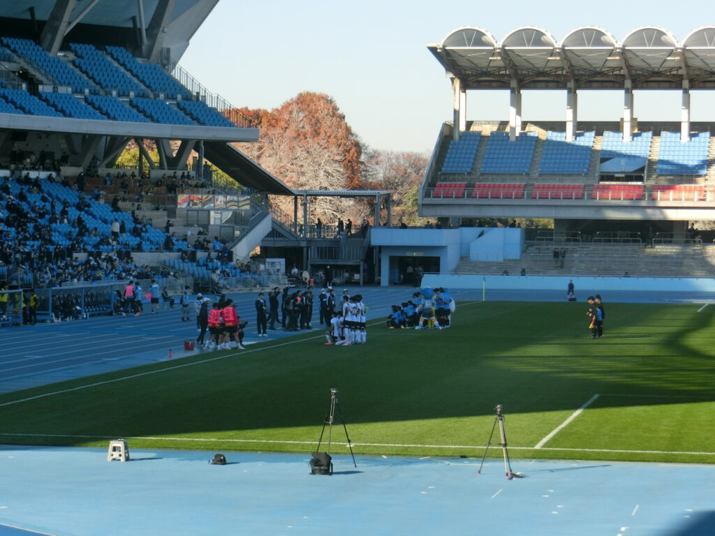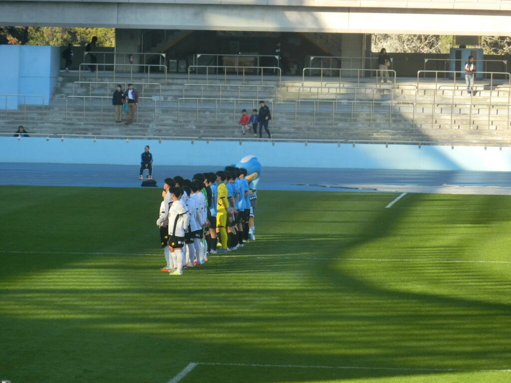 陸上トラックがあるということで、ピッチが遠いのは難点でしたが、なんというか、表現は難しいのですが、相手の応援の雰囲気を感じながら、ゴール裏でアウェイでの浦和レッズユースの戦いを見届けるというか、応援することができたことに一つの価値を感じたというか。