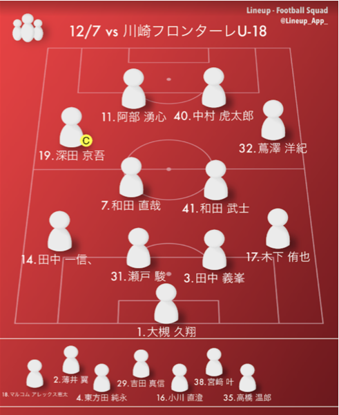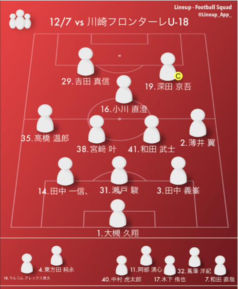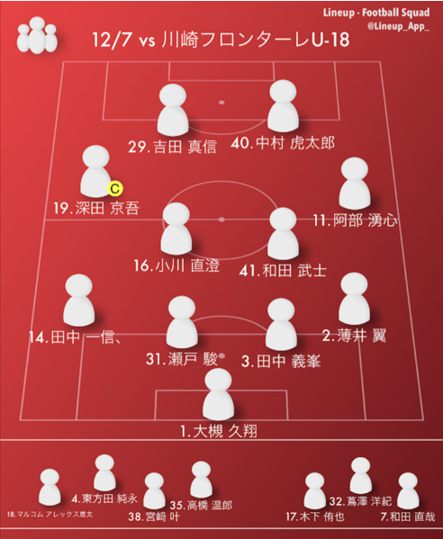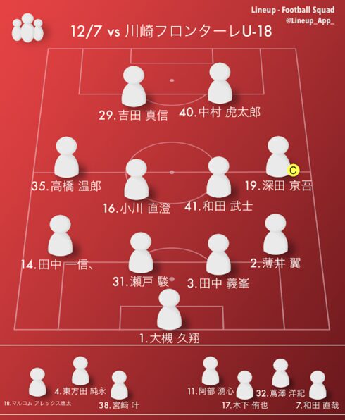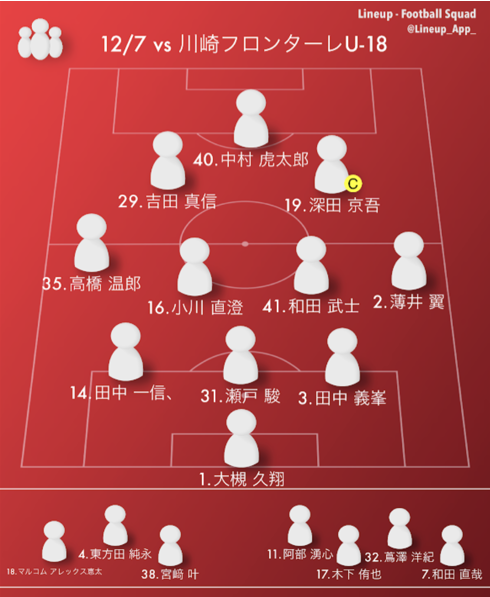 得点(浦和レッズユース):40番中村 虎太郎(前半2分)、7番和田 直哉(前半AT1分)