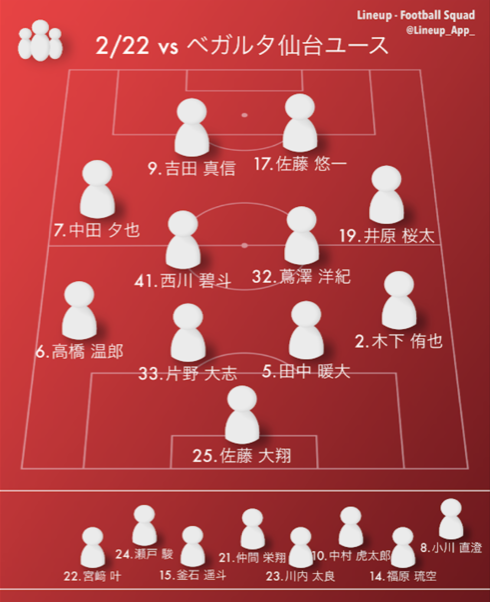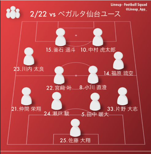 新シーズンの公式戦の開幕がまだ若干先という状況で、各チームが、それぞれのチーム作りをしている状況なので、現時点でそれぞれのチームがどのような位置付けでこの時点のトレーニングマッチに臨んでいるかは、全くわからないものの、今日の対戦相手は、今年プレミアに昇格するベガルタ仙台ユースということで、私個人的には、先週の試合で感じたことの続きを確認すると同時に、今年挑戦している戦い方に良いイメージを持つことができた中で、難しい相手と戦って結果もしっかり残していくことで、より向かっている方向に選手が取り組みやすくなるので、相手の現在地は別としてもプレミア昇格チームを撃破することの重要性にも勝手に重きを置いて見たので結果的に、2-1で勝ち切った(先制されてからの逆転という形に持って行けたのはなお良し)ことを特に相手を煽るとかではなく、タイトルに入れてみました。