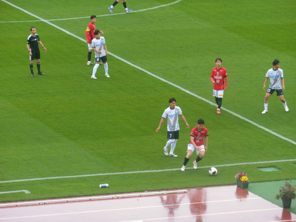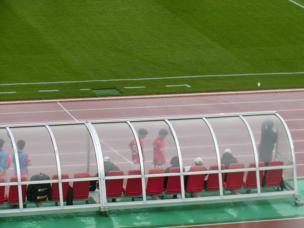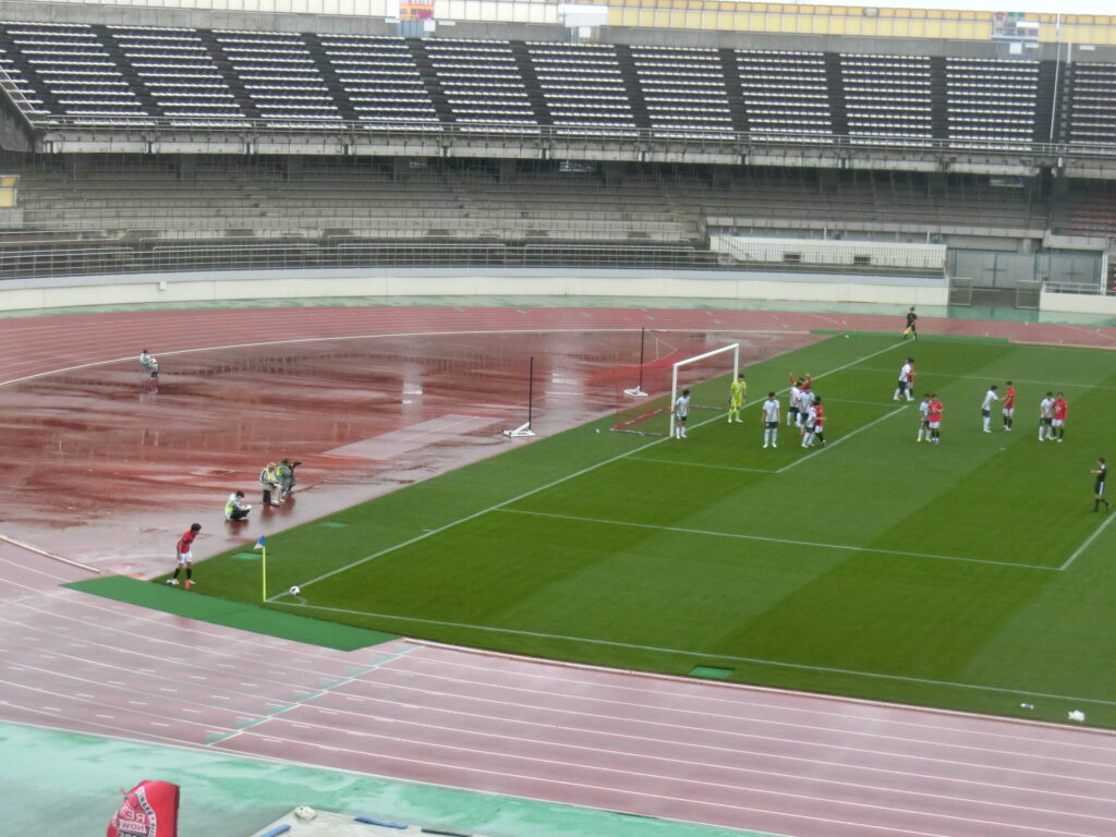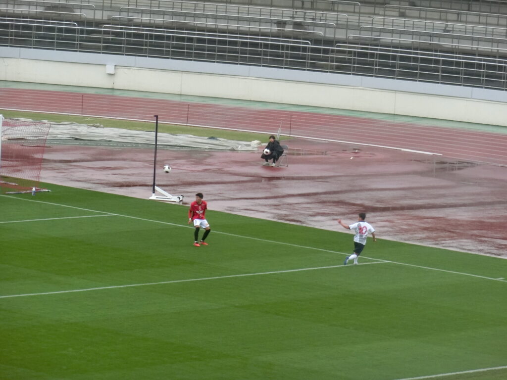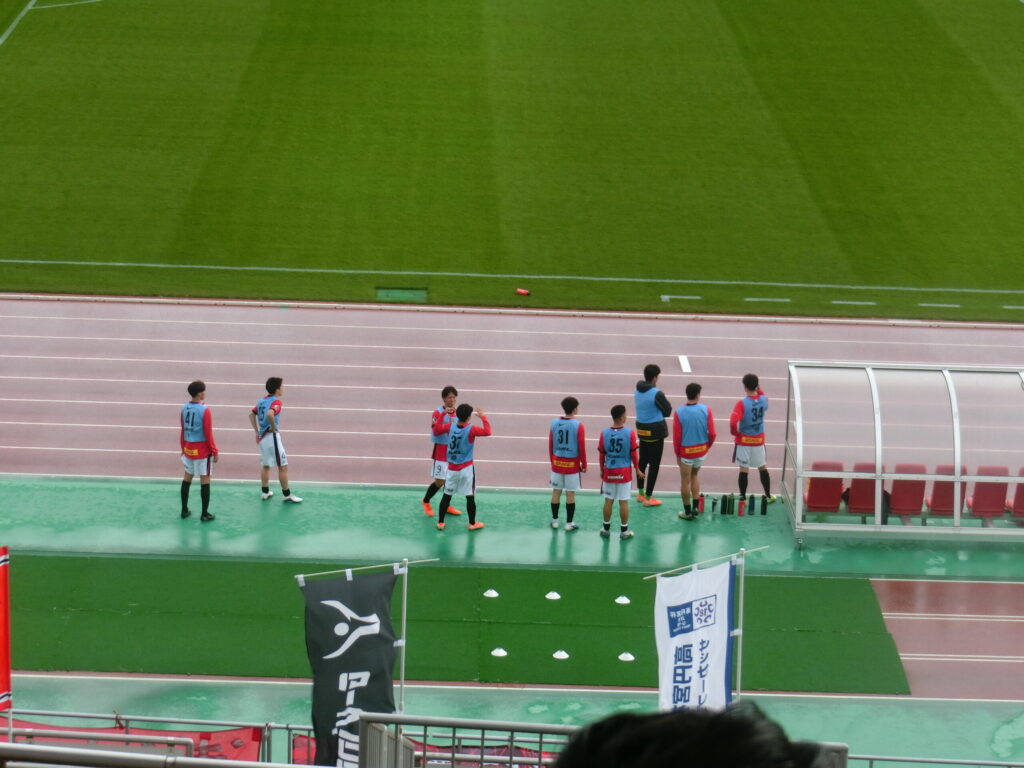 一つ前のブログでは触れ忘れましたが、すごい天気の1日でしたよね。寒い、強風、大雨が降ったり止んだり、駒場スタジアムのピッチレベルでプレーしていた選手は、どのような体感で、強風の影響を受けていたのかも気になりつつ、、