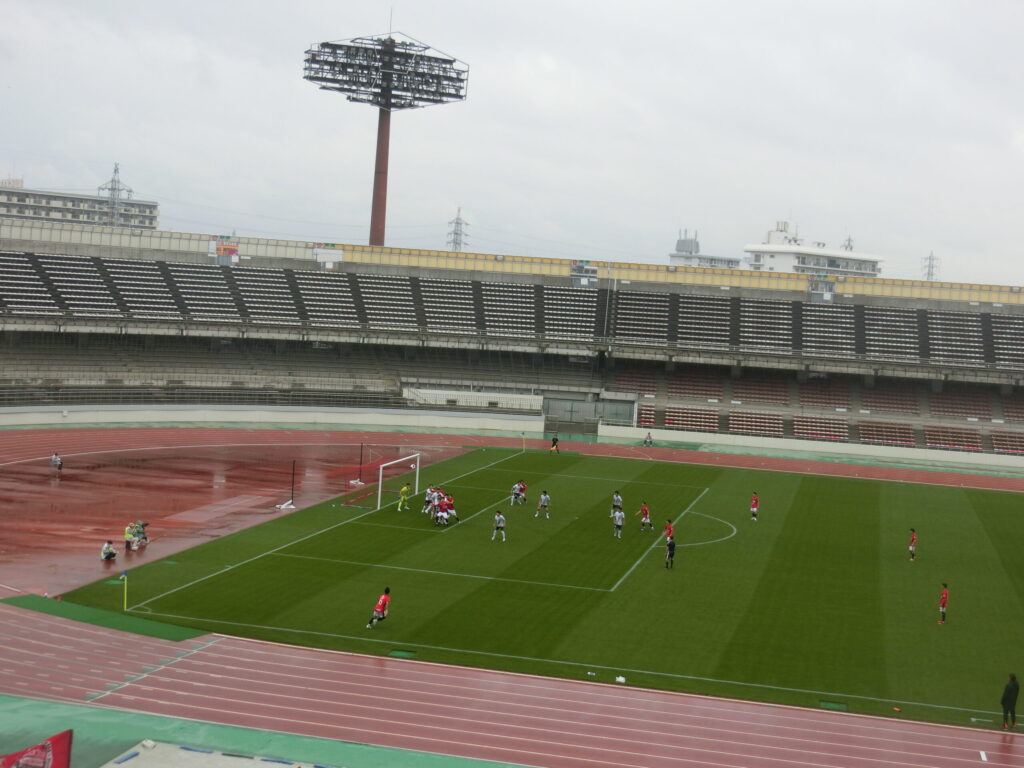 あと・・・昨年も感じていたものの、サッカー観戦のブランクが空いた5年ほどで視力が落ちたなと・・・今日は、スタンドの最上段くらいから観戦したのですが、選手の背番号がギリギリわかるくらいでした(メガネのレンズを変えようと割と本気で思ったり。)