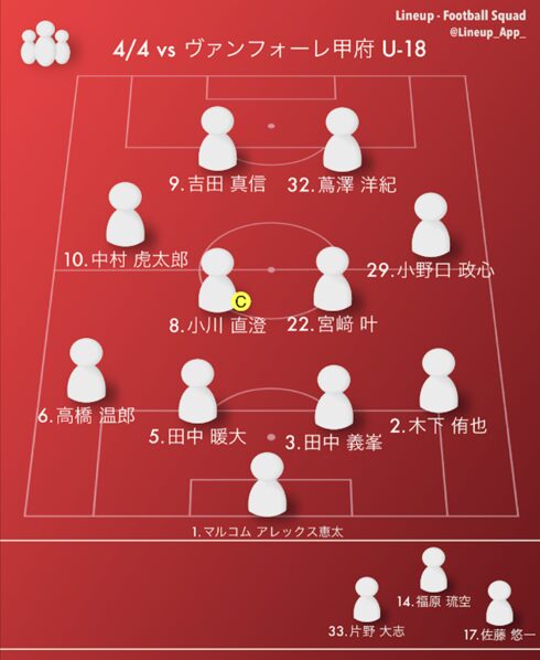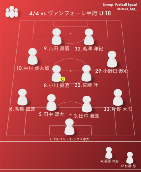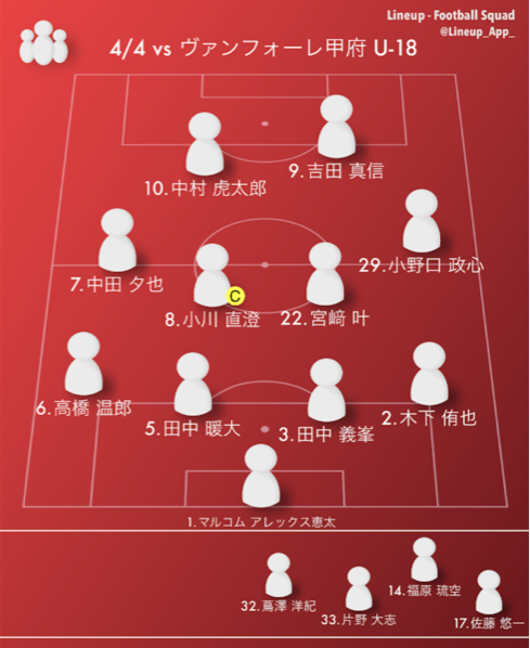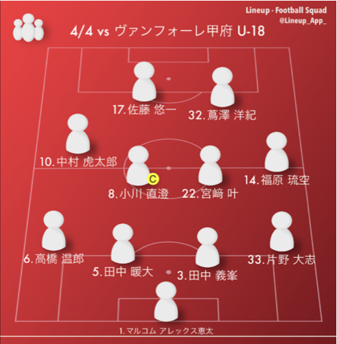 得点(ヴァンフォーレ甲府U-18):なし