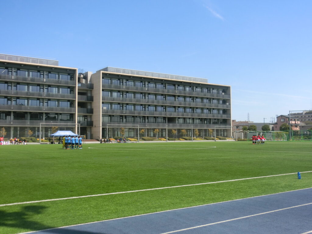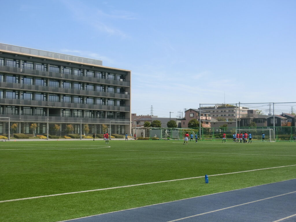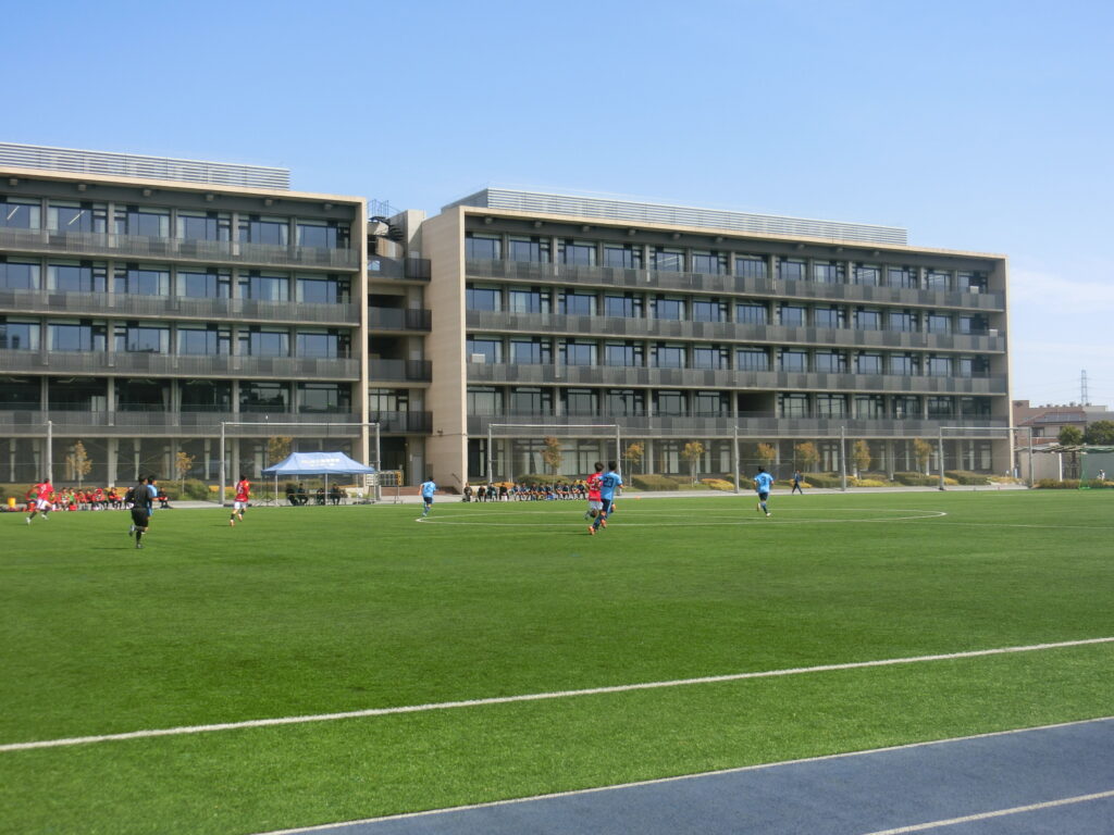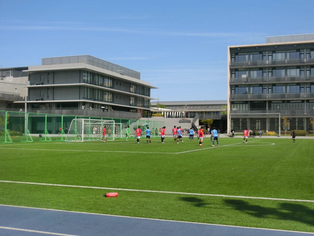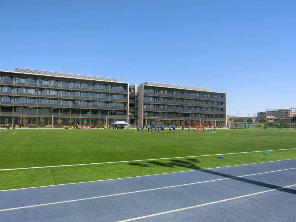 私自身は、この会場が初めてで、最初は、グラウンドを探していたら上記の写真で言うと一番奥の校舎の横くらいに行ってしまい、そこにいた対戦相手の選手に教えてもらい、またグルッと回って、観戦場所を聞き、この写真が撮れる場所まで移動したのですが、後々知ることになるのですが、こちらのサイドの川沿いの方を歩いていれば、もっとスムーズに会場に来られたようです。