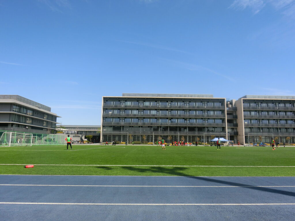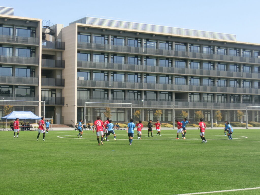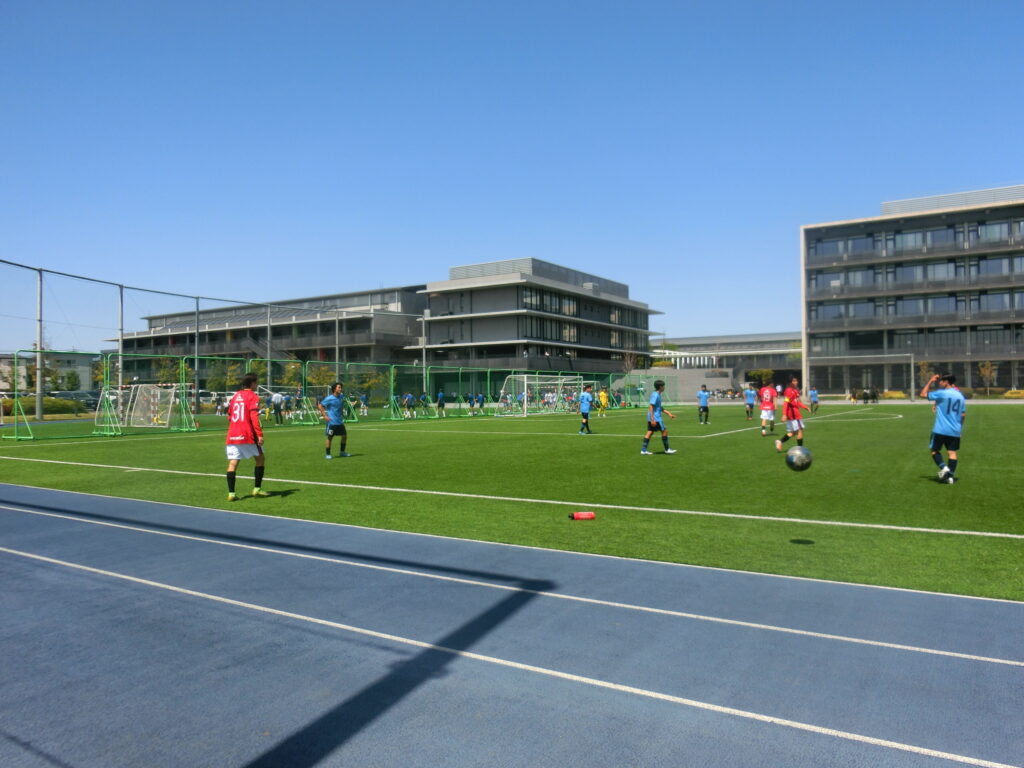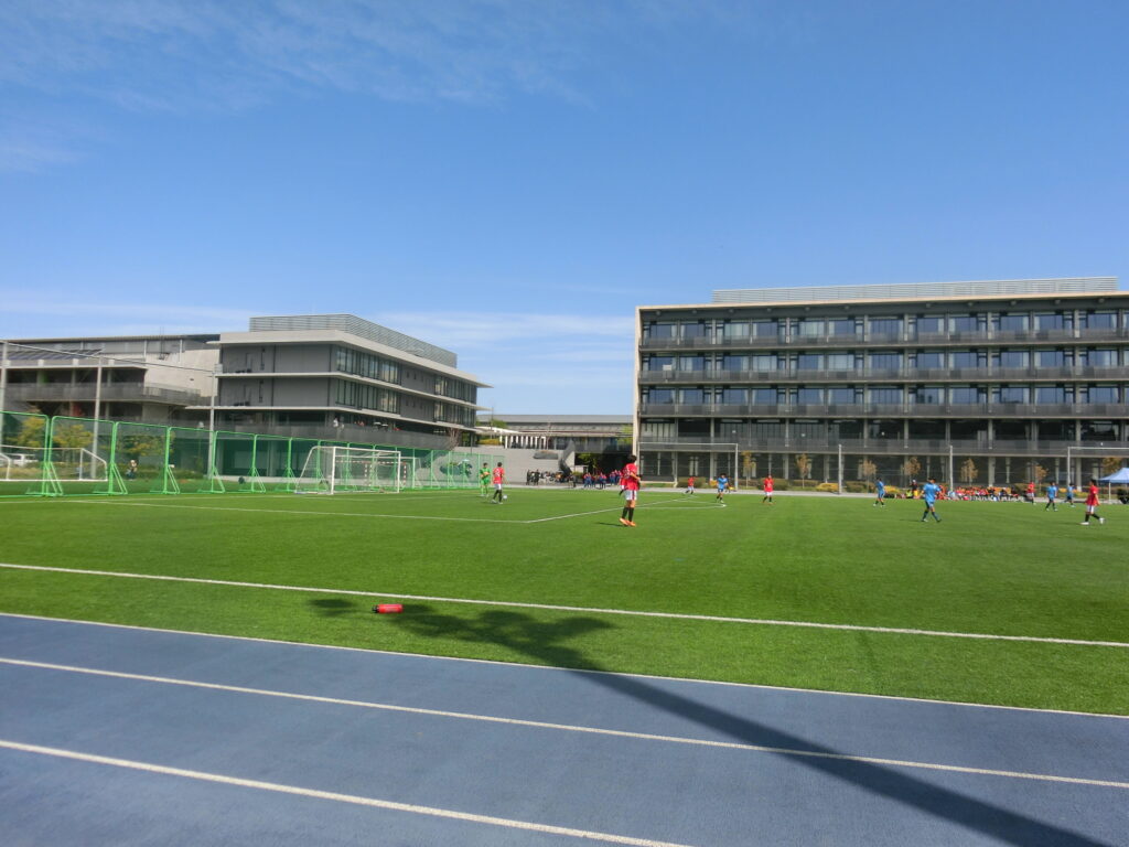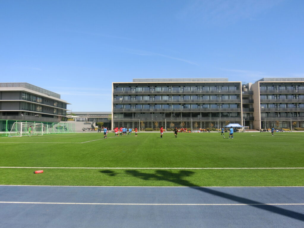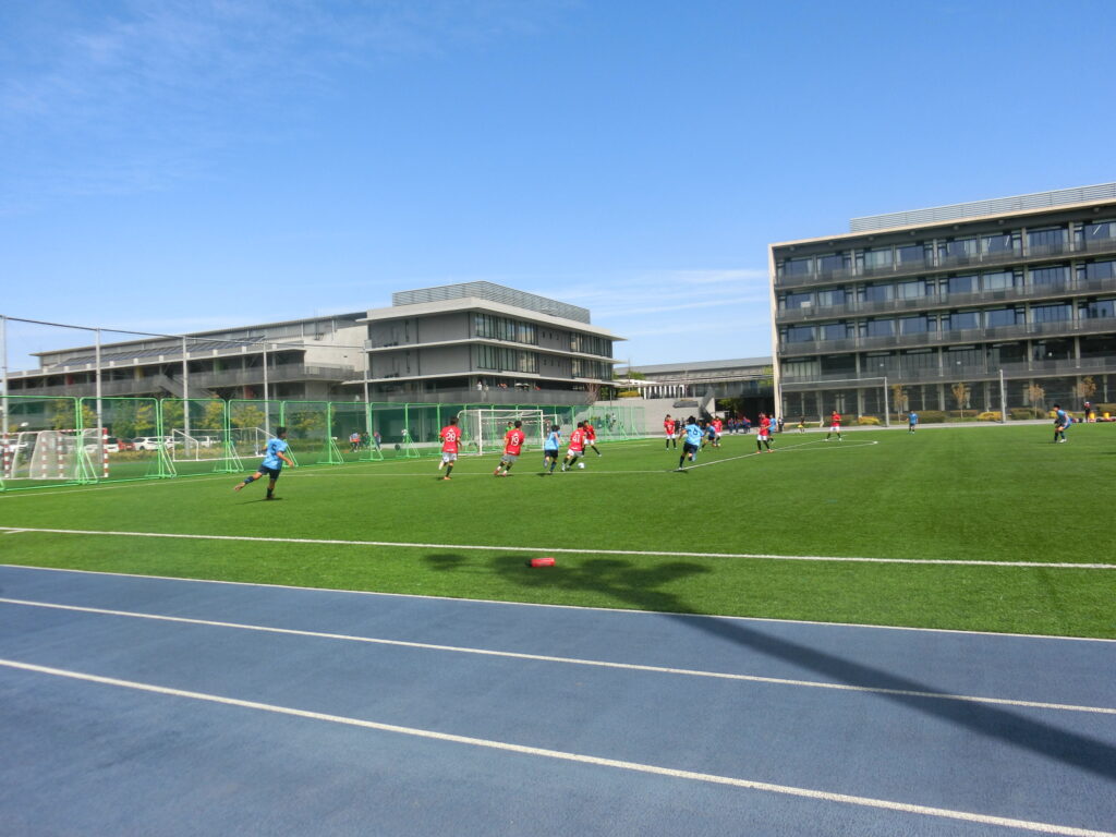 私自身は、この会場が初めてで、最初は、グラウンドを探していたら上記の写真で言うと一番奥の校舎の横くらいに行ってしまい、そこにいた対戦相手の選手に教えてもらい、またグルッと回って、観戦場所を聞き、この写真が撮れる場所まで移動したのですが、後々知ることになるのですが、こちらのサイドの川沿いの方を歩いていれば、もっとスムーズに会場に来られたようです。