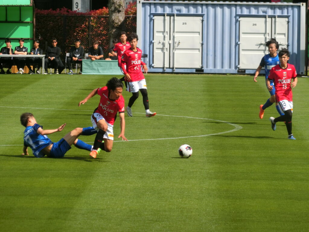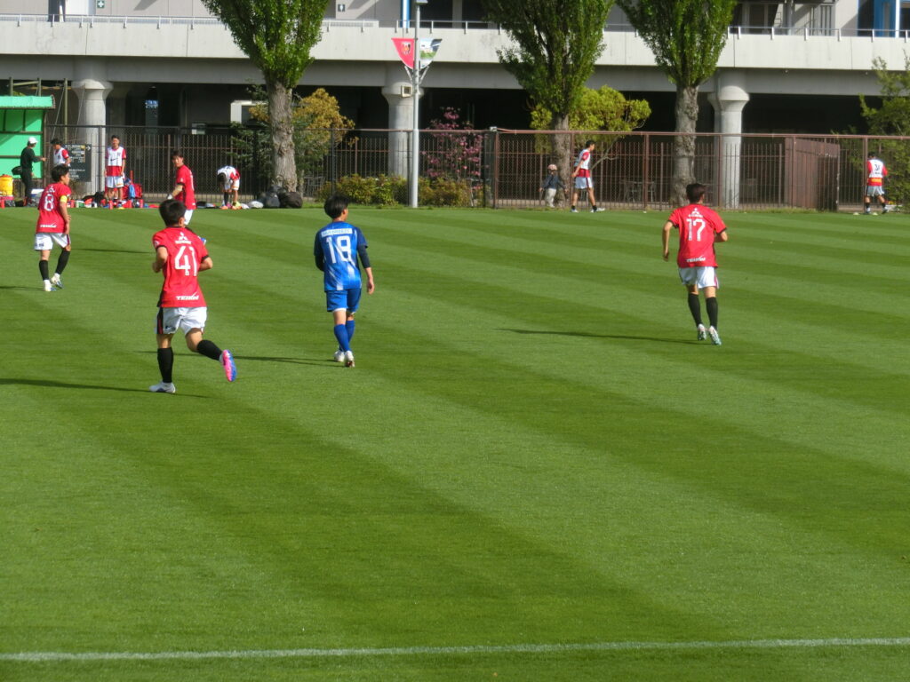 後半に入っても、浦和ペースは変わらず、早い時間にコーナーキックから10番中村 虎太郎がヘッドで決めて2-0、更に9番吉田 真信がペナルティエリア内で倒されてPKを獲得、このPKを10番中村 虎太郎が右隅に落ち着いて決めて3-0として、後半残り30分ほどを残して3-0と大きくリードをした流れで、その後も何度か得点チャンスは生まれるものの、追加点はなく、3-0で終了となりました。