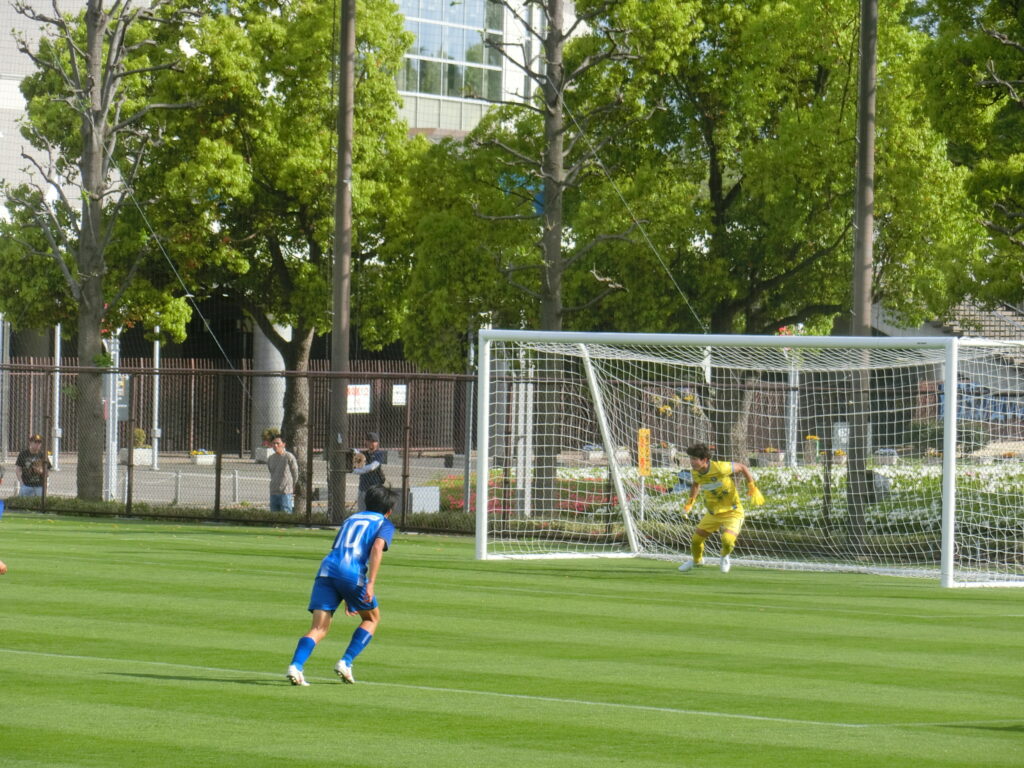 前半20分に13番和田 武士がドリブルで相手選手を1枚抜き去って右の14番福原 琉空に繋げ、持ち込んでのシュート