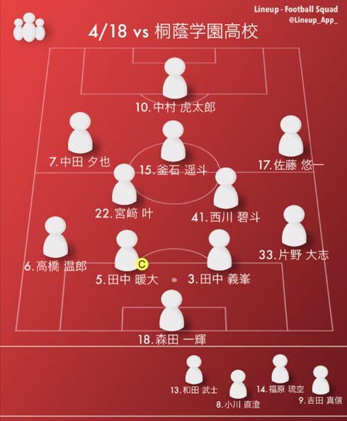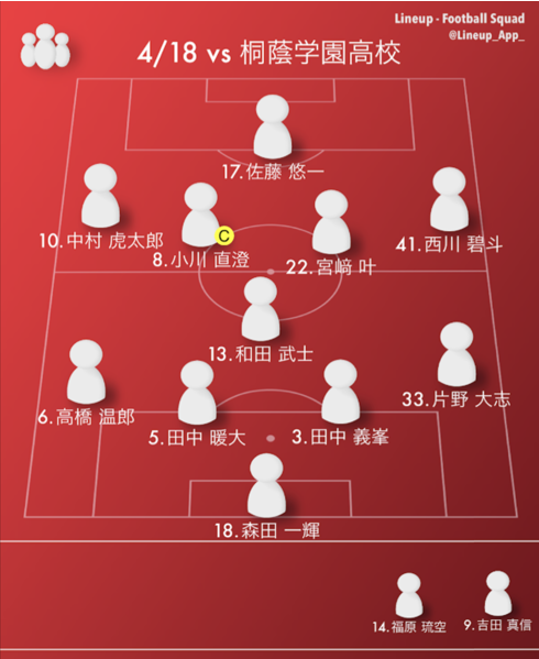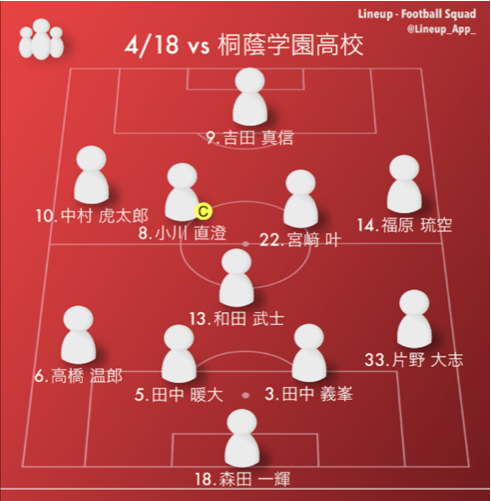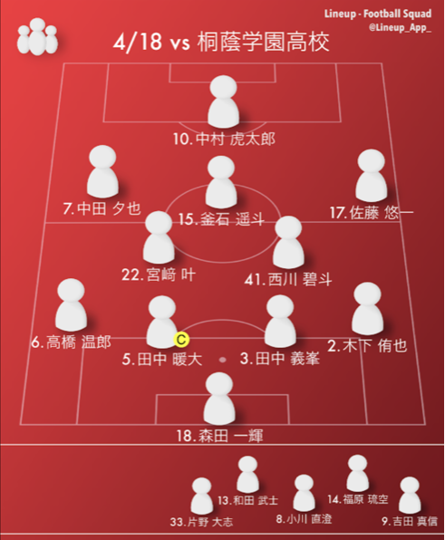 後半17分:14番 福原 琉空 ⇨ 41番 西川 碧斗、9番 吉田 真信 ⇨ 17番 佐藤 悠一