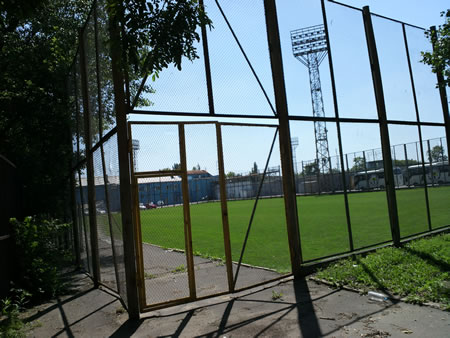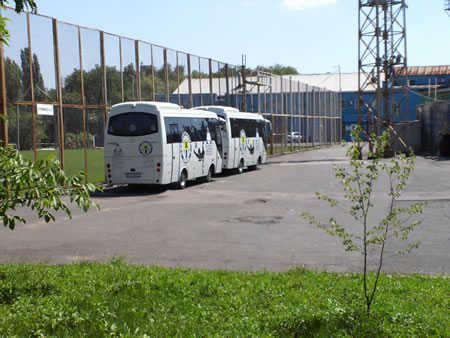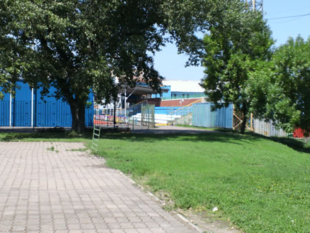 ドネツクの中心地のセントラル・ホテルを拠点に移動しました。事前に調べたところ、中心地から5キロ近くあるため、歩くのは厳しいためタクシーを使おうとも思っていたのですが、途中にあるシャフタール・スタジアム(中心から2.5キロくらい)まで歩いて行った流れで、そのままこのスタジアムまでも歩いていきました。 地図を見ながら細かい道に入ってしまい、現地の文字の難しさに苦戦して迷ってしまい、現地の方に道を聞いたら親切にスタジアムまで案内してくれてなんとかたどり着けたという流れなのですが、もっとシンプルで分かりやすい道が帰り道で見つかりました。それが、スタジアムまでの道のりで記載したルートです。 タクシー以外の公共交通機関で来る場合には、レニンスキー通りでバスに乗り、クイビシェヴァ通りとの交差点付近で降りて、クイビシェヴァ通りでトラムに乗るのが良いかと思います。 ちなみに、通り名など英語表記で記載していますが、現地ではキリル語表記のみになりますので、正直理解できていないと、何がなんだか分かりません。 スタジアム自体は、5000人規模の小さなスタジアムで、スタジアム内部には入ることはできませんでした。 | |