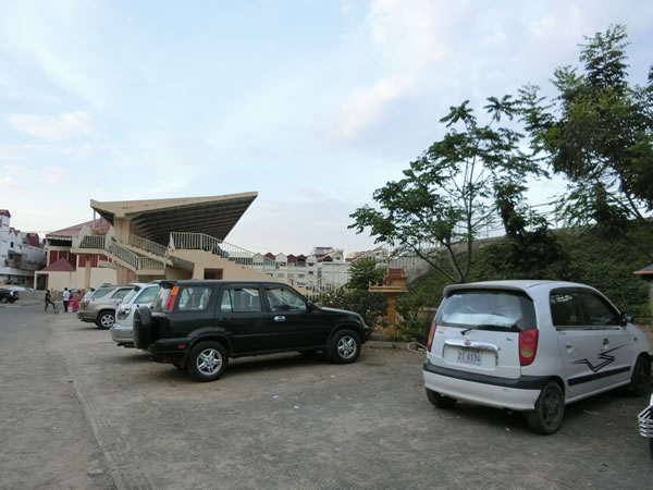 道のり | プノンペン駅から距離にして1.5キロ程度。徒歩で20分くらいで行けるスタジアムです。 トゥクトゥクやバイクタクシーでも行きやすい場所で、プノンペンで誰でも知っている大通り、モニボン通りをひたすら北上して行き、ロータリーで左折してすぐになります。ロータリーは、右側からぐるっと回っていく感じです。 |