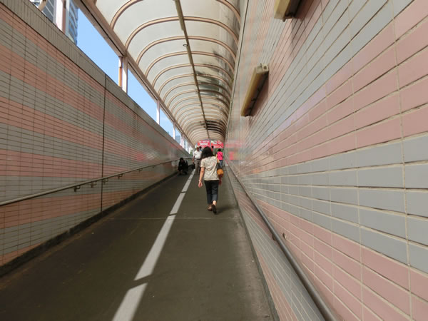 出口を抜けると、そのままこのような道に入りますので、ここを抜けます。