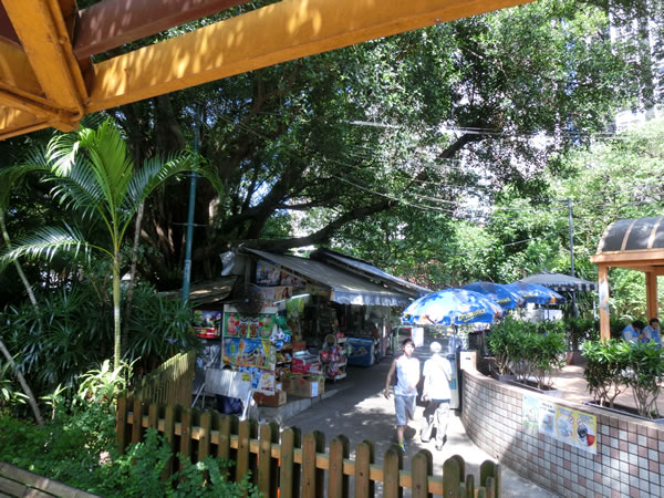 途中、小さな公園ぽいところを抜けていきます。小さな商店などがあります。