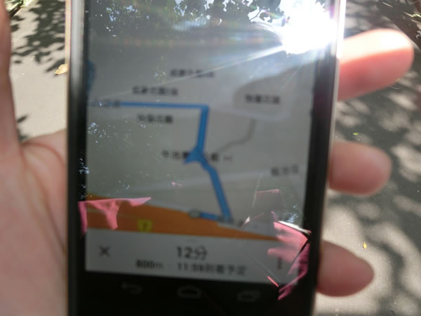 ぼやけてしまっていますが、ナビで見ると、12分とあります。このナビでの入口まで行く手前にスタジアムの入口がありましたので、実際には、もっと早く着きました。