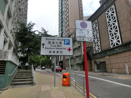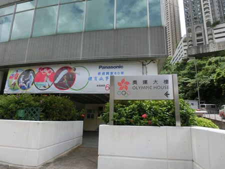 ■しばらく進んでいくと、香港スタジアムではなく、オリンピックハウスという言葉が出てきて「?」となるかもしれませんが、この建物のとなりが香港スタジアムなのでこの方向でOKです。